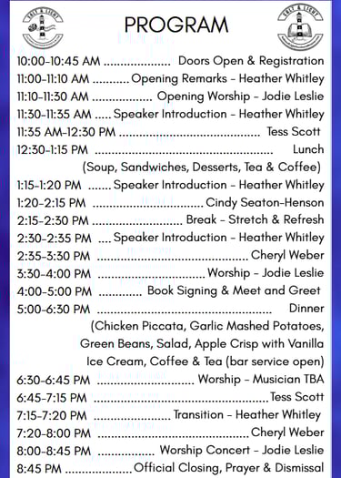 Featuring inspirational speaker: Cheryl Weber, Tess Scott and Cindy Seaton- Henson as well as the music of Jodi Leslie.